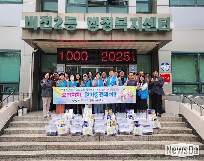 뉴스다 최광묵 기자 | 평택시 비전2동 지역사회보장협의체는 지난 2일 지역 내의 홀로 사는 어르신 및 저소득 위기가정 15가구에 추석맞이 명절 먹거리를 전달하는 ‘으라차차 원기충전데이’를 추진했다.