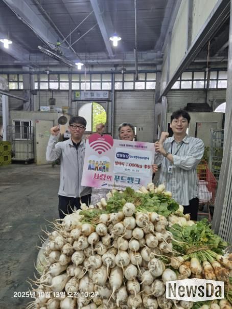 뉴스다 최광묵 기자 | 안산시는 지난 13일 안산시농수산물도매시장 내 중도매인인 반월농산으로부터 당일 출하된 알타리 1,000kg을 후원받았다고 14일 밝혔다.