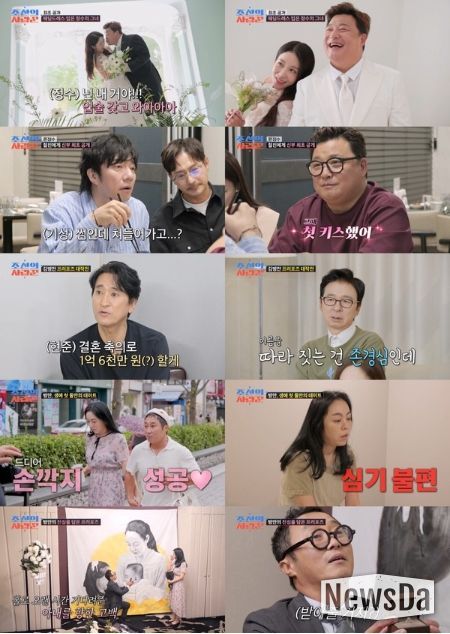 뉴스다 김지연 기자 | TV CHOSUN 극사실주의 다큐 예능 ‘조선의 사랑꾼’에서 '원진서' 윤정수가 ‘찐친즈’ 배기성X임형준과 청첩장 모임을 가졌다. 또, 김병만이 결혼 전 63빌딩에서 아내에게 감동의 프러포즈를 하는 장면이 포착됐다.
