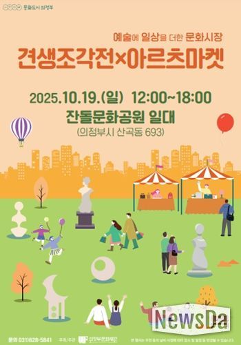 첫 번째는 10월 19일 12시부터 18시까지 잔돌문화공원(산곡동 693)에서 열리는 '견생조각전×아르츠마켓'이다. 의정부문화재단과 고산주민자치회가 공동 기획한 이 행사는 '비어 있던 풍경, 견생조각전(見生彫刻展)으로 채우다 - 고산동 작은 영웅들과 함께하는 어울림 한마당'으로 진행된다. 20여 개의 아르츠마켓 부스는 물론, 야외 조각전시와 다채로운 공연이 더해져 시민들에게 문화 향유의 폭을 넓힐 것으로 기대된다.