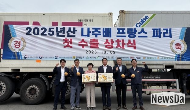 나주시(시장 윤병태)는 최근 장현순 네시피F&B 대표, 이동희 나주배원예농협 조합장, 최명수 전남도의원 등 관계자가 참석한 가운데 나주배 프랑스 첫 수출 상차식을 진행했다고 14일 밝혔다.