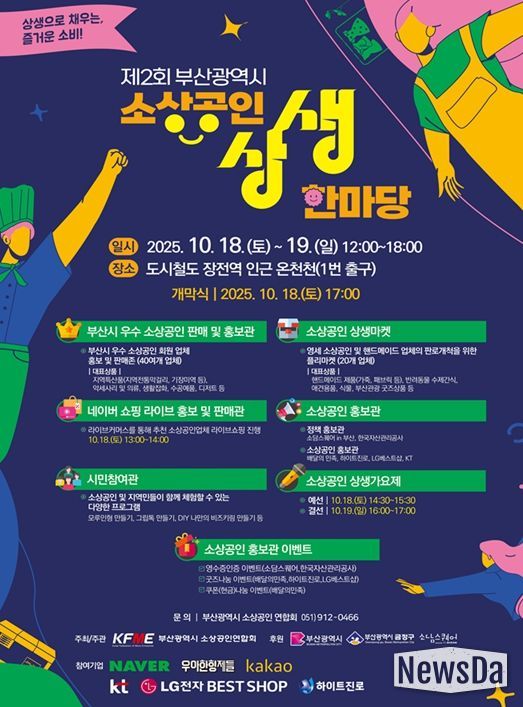 뉴스다 최광묵 기자 | 부산시는 오는 10월 18일부터 19일까지 2일간 금정구 장전역 인근 온천천 일원에서 '제2회 부산시 소상공인 상생한마당' 행사가 개최된다고 밝혔다.