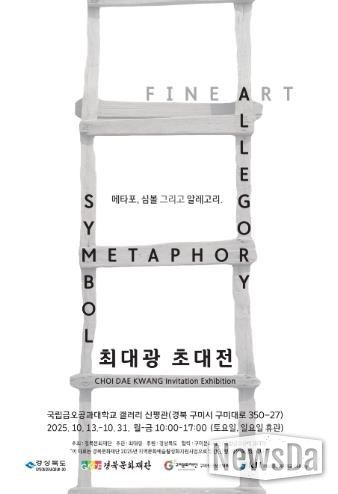 뉴스다 최광묵 기자 | (재)구미문화재단은 국립금오공과대학교와 협력하여 진행하고 있는 ‘구미청년상상마루 1기 입주작가 릴레이 전시’의 마지막 순서로 최대광 작가의 두 번째 초대전 '메타포 심볼 알레고리'를 개최한다고 밝혔다.