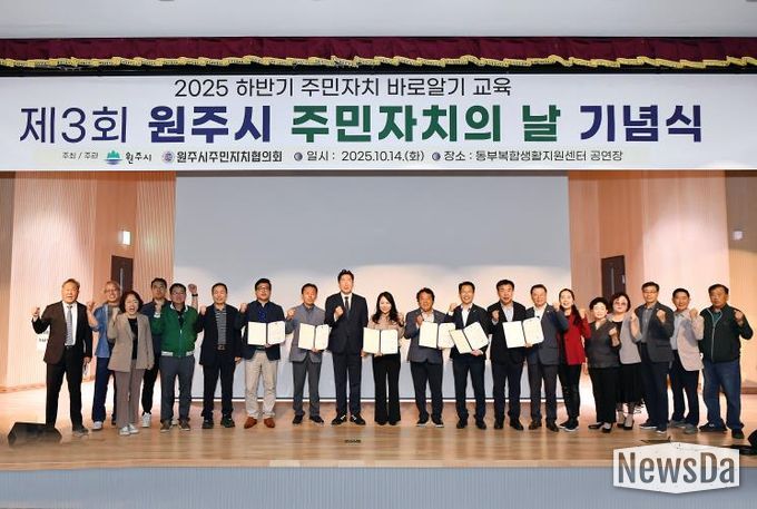 뉴스다 최광묵 기자 | 원주시와 원주시주민자치협의회는 지난 14일 동부복합생활지원센터 공연장에서 ‘제3회 원주시 주민자치의 날 기념식’을 개최했다.