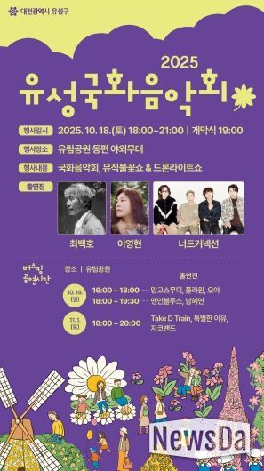 대전 유성구는 오는 18일 오후 6시 유림공원에서 ‘제16회 유성국화축제’의 개막을 알리는 ‘2025 유성국화음악회’를 개최한다.