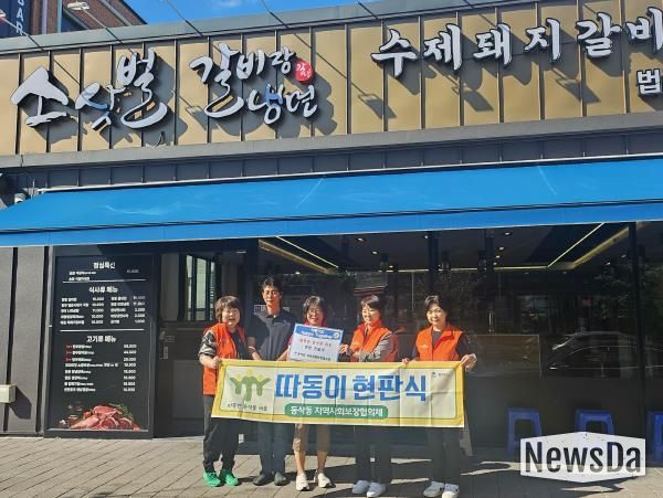 뉴스다 최광묵 기자 | 평택시 동삭동 지역사회보장협의체는 지난 15일 관내 취약계층 10가구에 월 2회 정기적으로 5가지 밑반찬을 지원할 예정인 소삿벌 법원직영점에 ‘따동이’ 5호점 현판을 전달했다.
