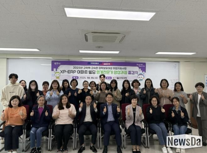 뉴스다 최광묵 기자 | 광주시는 지난 15일 ICT폴리텍대학에서 고학력·고숙련 경력 보유 여성의 취업 지원을 위해 추진한 ‘XP-ERP 아파트·빌딩 회계 전문가 양성 과정’ 종강식을 개최했다.