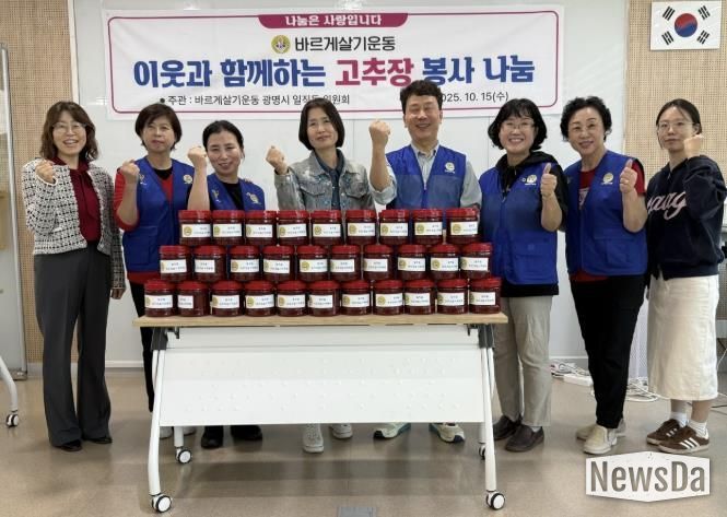 뉴스다 최광묵 기자 | 광명시 일직동 바르게살기위원회는 지난 15일 관내 어려운 이웃을 돕기 위해 ‘이웃과 함께 하는 고추장 나눔 봉사’ 활동을 실시했다.