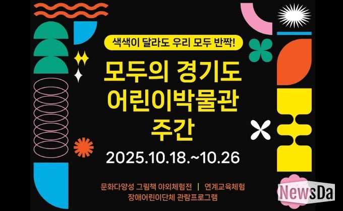 뉴스다 최광묵 기자 | 경기문화재단 경기도어린이박물관(관장 박균수)은 오는 10월 18일부터 10월 26일까지 문화다양성 행사 〈색색이 달라도 우리 모두 반짝! 모두의 경기도어린이박물관 주간〉을 운영한다. 본 행사는 《문화다양성 그림책 야외체험전》, 유아 및 초등 어린이를 위한 연계프로그램, 장애어린이단체 맞춤형으로 개발된 접근성 콘텐츠를 활용한 관람프로그램 시범운영 등 총 3종으로 구성되어 다양한 모습의 관람객을 만나게 된다.