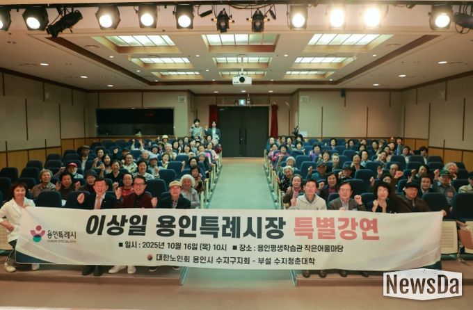 뉴스다 최광묵 기자 | 이상일 용인특레시장은 16일 오전 수지구 큰어울마당에서 대한노인회 용인시 수지구지회가 운영하는 수지청춘노인대학 어르신 100여 명을 대상으로 미술 특강을 했다.