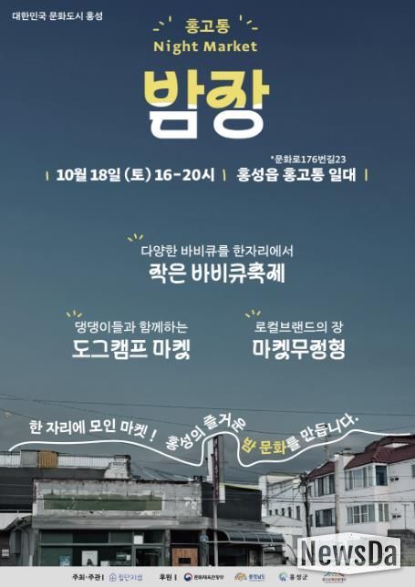뉴스다 최광묵 기자 | 홍성군은 오는 18일, 16시부터 20시까지 홍성읍 원도심인 ‘홍고통(홍주 로컬콘텐츠타운)’에서 제3회 [골목이 살아나는 홍고통 Night Market 밤장]이 개최될 예정이다.