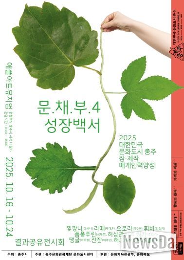 뉴스다 최광묵 기자 | 충주시와 (재)충주문화관광재단 문화도시센터는 2025 대한민국 문화도시 충주 사업의 일환으로 진행한 ·제작 매개인력 양성 '문화를 채우는 부족 4 : 성장백서'의 결과 공유 전시회를 충주시 애플아트뮤지엄(충주시 지현동 852)에서 10월 16일 15시 오픈식을 시작으로 24일까지 9일간 개최한다.