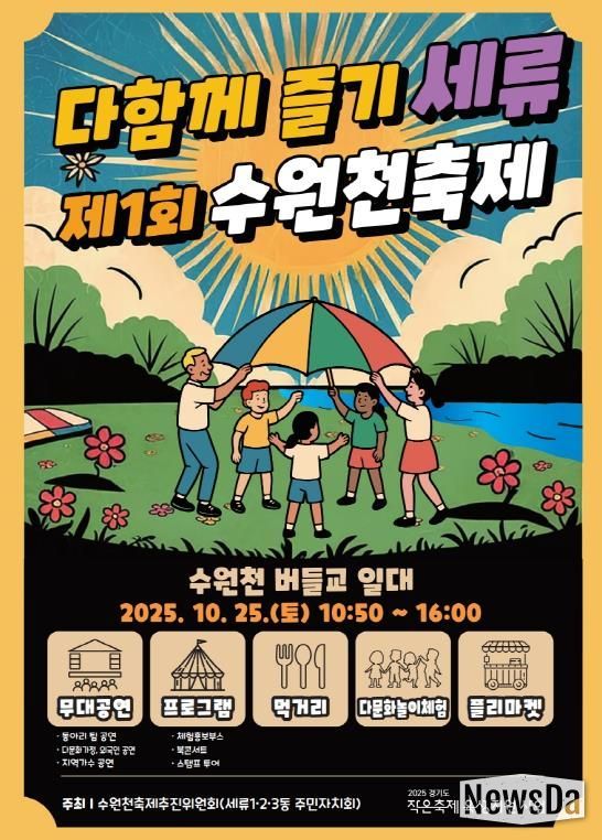 뉴스다 최광묵 기자 | 수원시 권선구 ‘수원천축제추진위원회’가 주최하는 '제1회 수원천 축제 다함께즐기세류'를 오는 25일에 권선구 버들교 일대에서 개최한다고 밝혔다.
