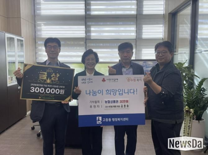 이번 기부는 관내 어려운 이웃들에게 따뜻한 나눔을 전하고자 하는 개인의 뜻에 따라 전달된 상품권은 고등동 관내 취약계층에게 지원될 예정이다.