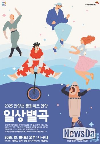 안양문화예술재단은 이번 문화위크 기간 중 10월 18일 오후 1시부터 5시까지, 박달동 박석교 하부 잔디마당에서 ‘2025 안양천 문화위크 안양 : 일상별곡’을 개최한다. 이번 행사는 만안종합사회복지관의 마을환경축제 ‘ZERO MANAN’과 공동 개최되며, 지역 내 환경문제에 심각성을 인식하고 공동대응하기 위한 친환경, 자원순환 부스가 운영된다. 부스 운영시간에는 가족 단위 방문객을 위한 상 ‘서커스 오브 안양천’ 공연과 서커스 체험 프로그램도 함께 진행된다.