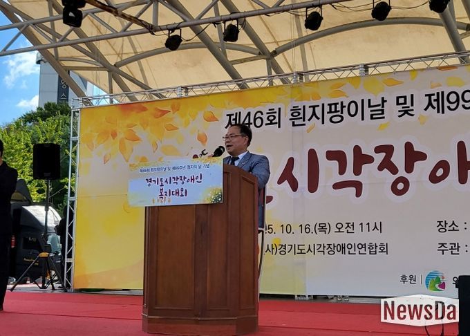뉴스다 최광묵 기자 | 경기도의회 보건복지위원회 박재용 의원(더불어민주당, 비례)은 16일 의왕시 왕송호수공원 잔디마당에서 열린 ‘제46회 흰지팡이의 날 및 제99주년 점자의 날 기념 경기도 시각장애인 복지대회’에 참석해 경기도의회 의장상 표창장을 수여하고, 시각장애인의 권익 증진을 위한 제도 개선의 필요성을 강조했다.