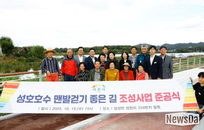 뉴스다 최광묵 기자 | 이천시가 10월 15일, 설성면 성호호수 맨발걷기 좋은길 조성사업 준공식을 했다. 이번 준공식에는 김경희 이천시장을 비롯한 박명서 이천시의회 의장, 허원 경기도의회 건설교통위원장과 설성면 기관·사회 단체장 및 지역 주민들이 참석했다.
