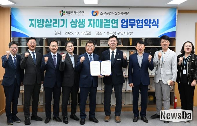 뉴스다 최광묵 기자 | 대전 중구는 지난 17일 소상공인시장진흥공단과 지방살리기 상생 자매결연 업무협약을 체결했다고 밝혔다.