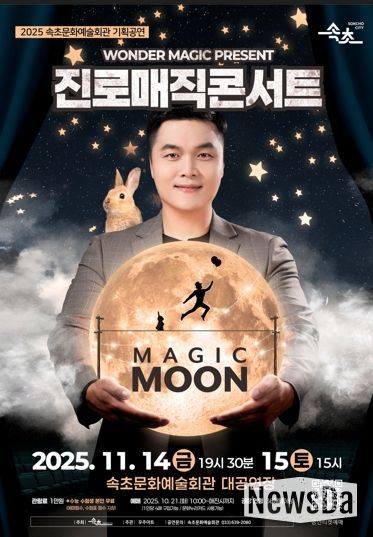 뉴스다 최광묵 기자 | 속초시는 오는 11월 14일 금요일과 11월 15일 토요일 이틀간 속초문화예술회관에서 최형배 마술사의 진로매직콘서트 MAGIC MOON을 선보인다.