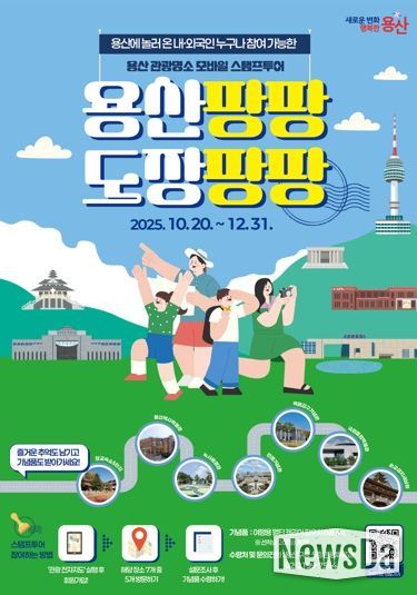 뉴스다 최광묵 기자 | 서울 용산구가 오는 20일부터 12월 31일까지 용산의 주요 관광명소를 모바일로 즐길 수 있는 ‘용산 팡팡! 도장 팡팡! 2025 용산구 관광명소 모바일 스탬프투어’를 운영한다.