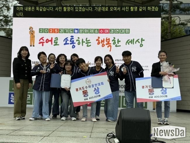 뉴스다 최광묵 기자 | (사)경기장애인부모연대 동두천지회 소속‘다담노리터팀’이 지난 18일 열린 '2025년 경기도 농문화제 및 수어경연대회'에서 ‘질풍가도’ 공연으로 동상을 수상했다.