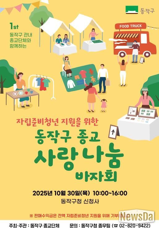뉴스다 최광묵 기자 | 동작구가 종교 간 협력을 증진하고, 나눔 문화를 확산하기 위해 오는 30일 ‘제1회 동작구 종교 사랑나눔 바자회’를 개최한다고 밝혔다.