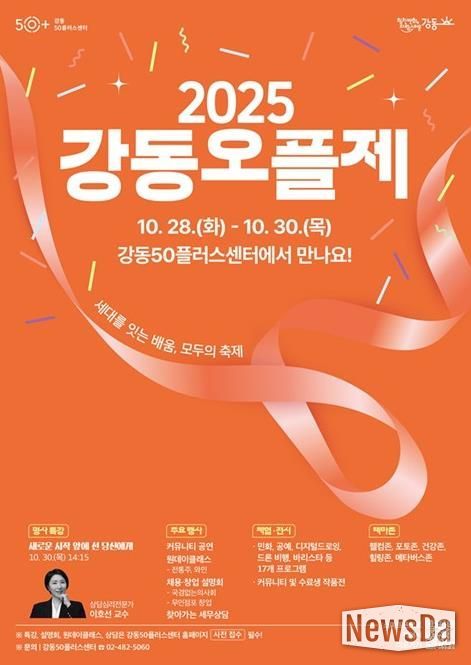 뉴스다 최광묵 기자 | 강동구는 오는 10월 28일부터 30일까지 3일간, 강동50플러스센터(올림픽로 752, 천호동)에서 ‘2025 강동오플제’를 개최한다고 24일 밝혔다.