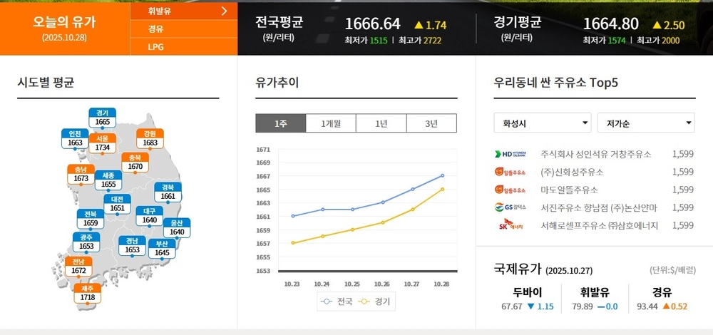 ▲화성시 경 유 제일 싼 주유소 1467원 대원주유소