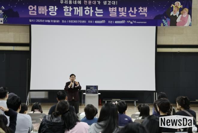 뉴스다 최광묵 기자 | 박강수 마포구청장은 10월 31일 저녁 7시, 마포365구민센터 내 마포365천문대에서 열린 ‘엄빠랑 함께하는 별빛산책’ 행사에 참석해 마포구민들과 특별한 가을밤을 보냈다.
