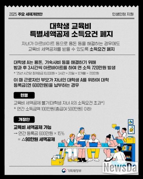 뉴스다 최광묵 기자 | 대학생 교육비 특별세액공제 소득요건 폐지