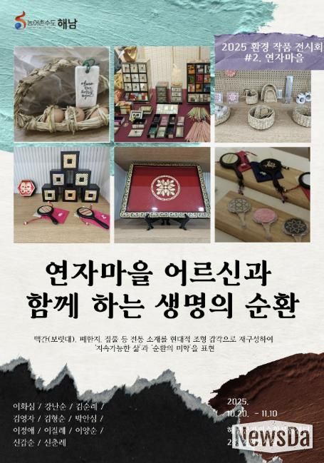뉴스다 최광묵 기자 | 해남군자원순환복합센터에서는 2025년 하반기 기획전시 두 번째 순서로 ‘연자마을 어르신과 함께 하는 생명의 순환’을 선보여 호평받고 있다. 지난 20일 개막한 이번 전시회는 11월 10일까지 센터 2층 기획전시실에서 이어진다.