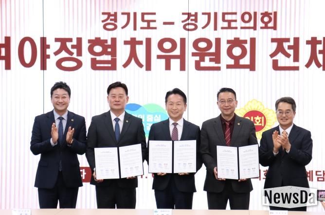 뉴스다 최광묵 기자 | 경기도의회 더불어민주당(대표의원 최종현, 수원7)은 4일 도의회 예담채에서 열린 ‘제1차 도의회-도 여야정협치위원회 전체회의’에 참석해 2026년도 본예산에 5개 분야의 협치예산을 편성하기로 경기도와 국민의힘과 함께 합의했다.