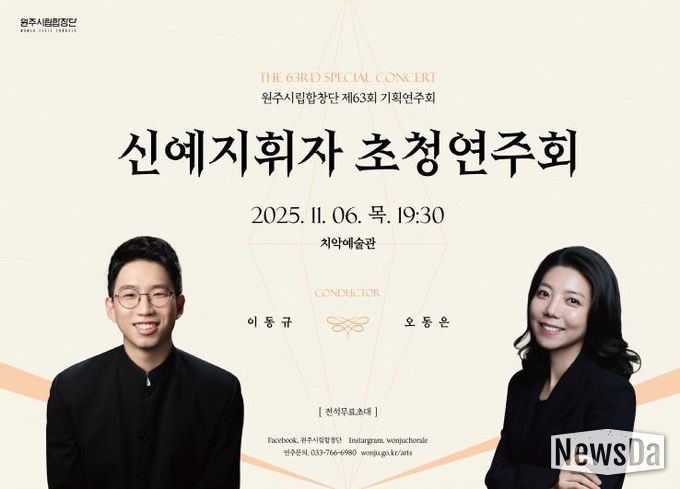 뉴스다 최광묵 기자 | 원주시립합창단 제63회 기획연주회가 오는 6일 오후 7시 30분, 치악예술관에서 개최된다.