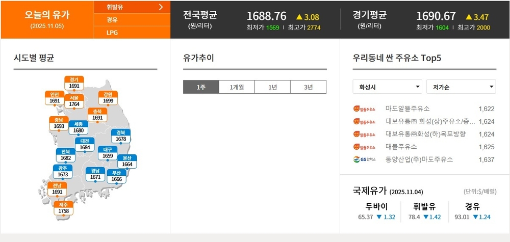 ▲화성시 휘발류 제일 싼 주유소 1622원 마도알뜰주유소
