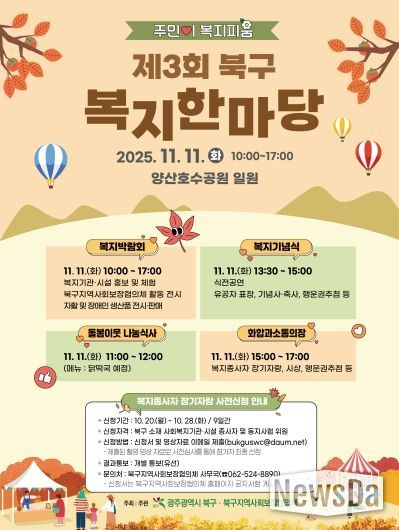 뉴스다 최광묵 기자 | 광주광역시 북구는 오는 11일 양산호수공원 일대에서 ‘복지한마당’ 행사를 개최한다고 10일 밝혔다.