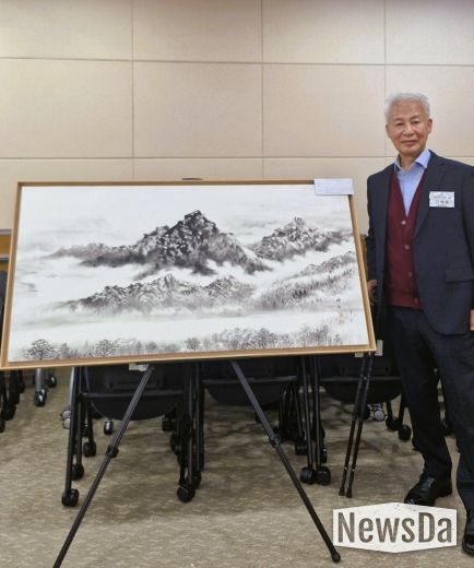 김재훈 실장이 대상을 받은 작품은 ‘동학산 소견’으로, 자신이 거주하는 달성군 가창면의 풍경을 그린 한국화다. 물안개가 피어오르는 아침의 동학산을 섬세한 필치로 담아낸 작품으로, 마치 사진처럼 생생하면서도 몽환적인 분위기로 심사위원들의 호평을 받았다.