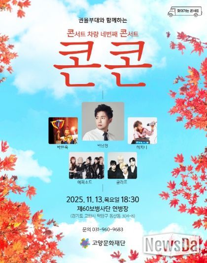 뉴스다 최광묵 기자 | 고양문화재단은 오는 11월 13일 오후 6시 30분, 고양시 덕양구에 위치한 제60보병사단 연병장에서 [권율부대와 함께하는 콘서트 차량 네 번째 콘서트 ‘콘콘’]을 개최한다.