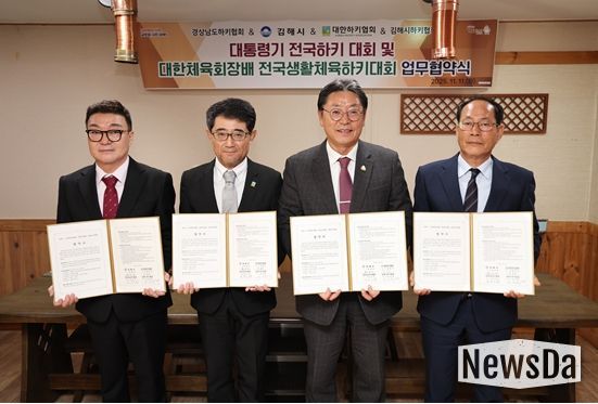 뉴스다 류대현 기자 | 김해시가 대한하키협회, 경남하키협회, 김해하키협회와 손잡고 향후 3년간 대통령기 전국하키대회와 대한체육회장배 전국생활체육하키대회를 개최한다.