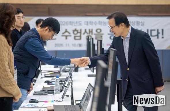 한편 임 교육감은 상황실 방문 전, 도내 한 수능 시험장교를 찾아가 교문 앞에서 수험생들을 응원했다.