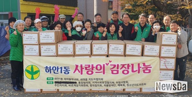 뉴스다 최광묵 기자 | 광명시 하안1동 새마을부녀회와 새마을지도자협의회는 지난 11일부터 12일까지 하안1동 행정복지센터 앞마당에서 ‘사랑의 김장 나눔 행사’를 열었다.
