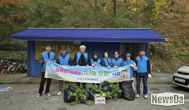 ‘행복이 자라는 나눔 텃밭’은 산본가야2차 아파트 단지 내 유휴 부지(약 140㎡)를 주택관리공단으로부터 제공받아, 협의체 위원들이 직접 다양한 농작물을 재배하고 수확하여 어려운 이웃과 나누는 수리동만의 특화사업이다. 올해는 8월에 가을무 모종을 심어 정성껏 가꾸어왔으며 풍성한 수확의 기쁨을 함께 나누게 됐다.