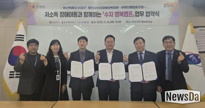 뉴스다 최광묵 기자 | 용인특례시 수지구는 13일 용인시수지장애인복지관과 수지신용협동조합과 함께 저소득 장애아동의 복지 향상과 장애 인식 개선을 위한 ‘수지 행복캠프’ 추진 업무협약을 체결했다고 14일 밝혔다.