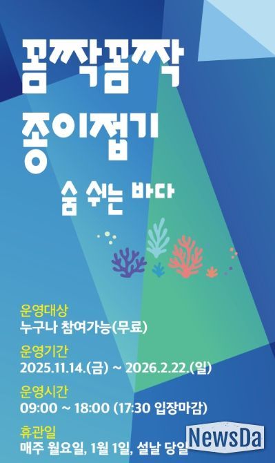 뉴스다 최광묵 기자 | 제주특별자치도 제주현대미술관은 14일부터 내년 2월 22일까지 관람객을 대상으로 ‘꼼짝꼼짝 종이접기’ 프로그램을 운영한다고 밝혔다.