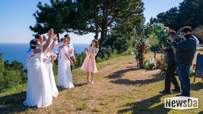 뉴스다 최광묵 기자 | 거제시는 지난 15일, 동백 원시림의 아름다움으로 유명한 지심도에서 ‘2025년 자연과 함께하는 웨딩·휴양섬’의 세 번째 프로그램으로 황혼 부부 3쌍을 초청해 감동적인 리마인드 웨딩과 기념 촬영 행사를 성공적으로 개최했다.