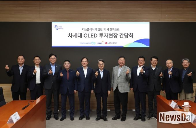 파주 LG디스플레이 R&D동에서 열린 ‘차세대 OLED 투자현장 간담회’에는 김경일 파주시장을 비롯해 박정 국회의원, 안명규·이용욱 도의원, LG디스플레이와 주요 협력사 대표 등 30여 명이 참석했다.
