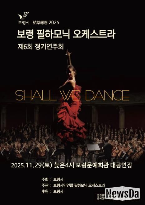뉴스다 최광묵 기자 | 보령시민연합 필하모닉 오케스트라가 오는 11월 29일 오후 4시 보령문화예술회관 대공연장에서 제6회 정기연주회 ‘Shall We Dance’를 개최해 시민들에게 특별한 음악적 감동을 선사한다.