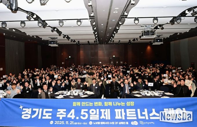뉴스다 최광묵 기자 | 경기도는 21일 수원 노보텔 엠버서더 샴페인홀에서 ‘주4.5일제 참여기업 파트너스 데이’를 개최하고, 도내 참여기업과 함께 노동시간 단축 문화 확산을 위한 정책 방향과 운영 성과를 공유하는 시간을 가졌다.