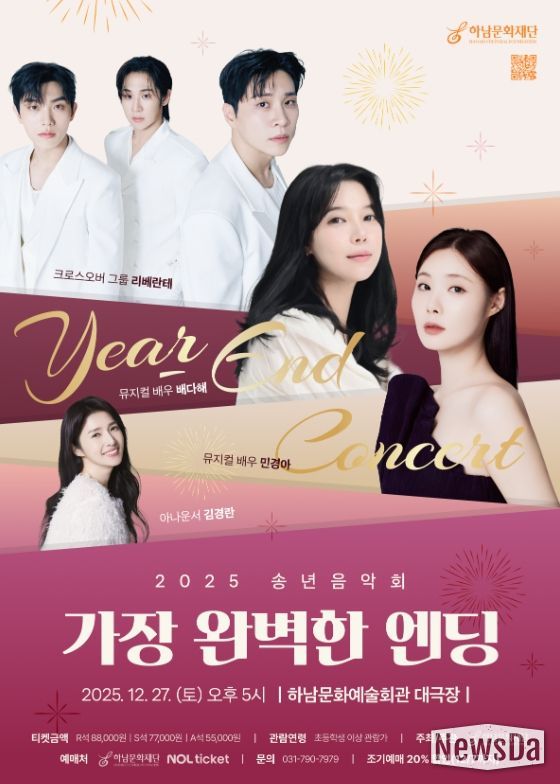 뉴스다 최광묵 기자 | 하남문화재단은 오는 12월 27일 오후 5시, 하남문화예술회관 대극장에서 개최하는 송년음악회 '가장 완벽한 엔딩'이 티켓 오픈과 동시에 전석 매진을 기록하며 재단 연말 대표 기획공연으로서의 높은 인기를 다시 한번 입증했다.