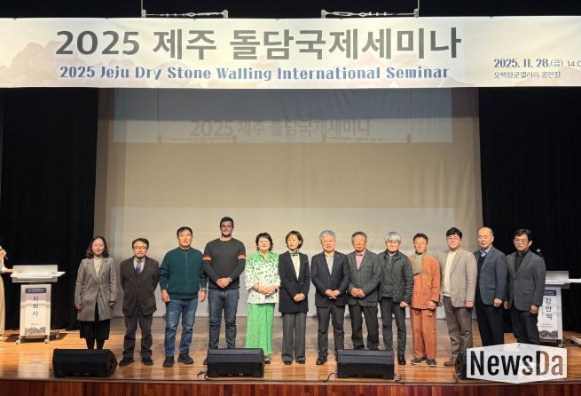 뉴스다 최광묵 기자 | 제주특별자치도 돌문화공원관리소가 28일 오백장군갤러리 공연장에서 '2025 제주 돌담국제세미나'를 열고 '제주 돌담 쌓기'의 유네스코 인류무형문화유산 등재를 위한 국제 협력 체계를 본격 가동했다.