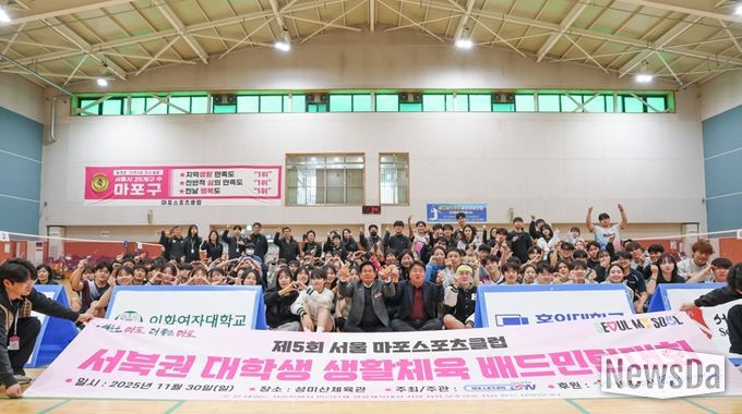 뉴스다 류대현 기자 | 박강수 마포구청장은 11월 30일 오전 10시, 성미산체육관에서 열린 ‘2025 서북권 대학생 배드민턴 대회’에 참석해 참가자들을 격려했다.
